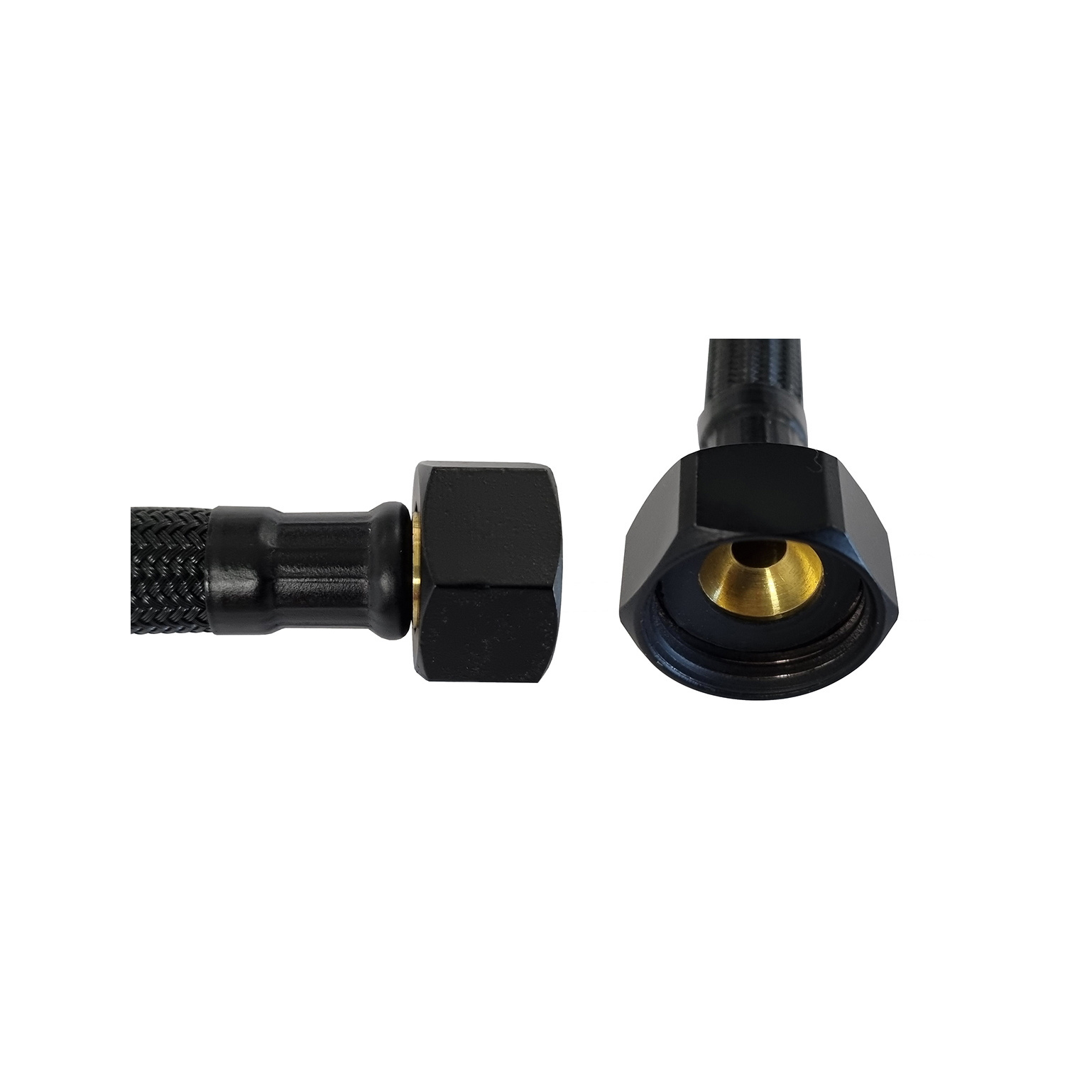 Kies voor een mooie afwerking van uw badkamer of toilet met de mat zwarte aansluitslang van Aquasplash. De slang is makkelijk aan te sluiten dankzij het flexibele nylon. De aansluitslang is 30 cm lang en heeft twee draadaansluitingen van 1/2" en 3/8".