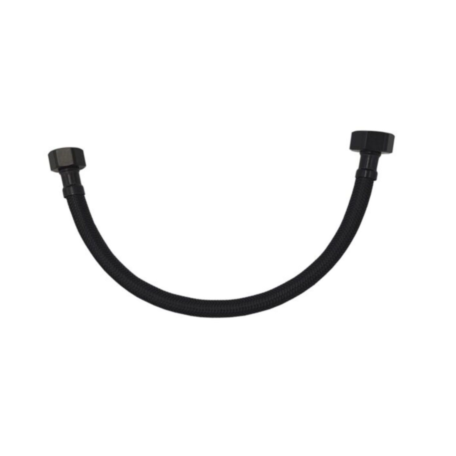 Bevat uw badkamer of toilet een mat zwarte kraan, sifon en/of wastafel? Dan is dit de perfect oplossing voor een mooie afwerking van het geheel in uw badkamer of toilet. Als u een zichtbare slang gaat plaatsen dan kunt u nu ook voor een mat zwarte variante kiezen! De slang is flexibel en is vervaardigd uit kunststof (nylon). De aansluitslang is 30 cm lang en heeft twee draad aansluitingen van 1/2" en 3/8" inch. De uiteinden zijn gemaakt van mat zwart messing zodat dit bij de rest van het product past!