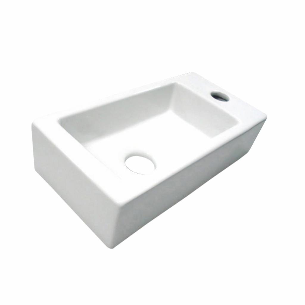 Het kraangat zit aan de rechterkant. Houdt met plaatsen rekening met aan welke zijde u de fontein wilt monteren. Er zorg voor een bijpassende afvoer en afvoerplug. Muurbevestiging wordt wel meegeleverd.
