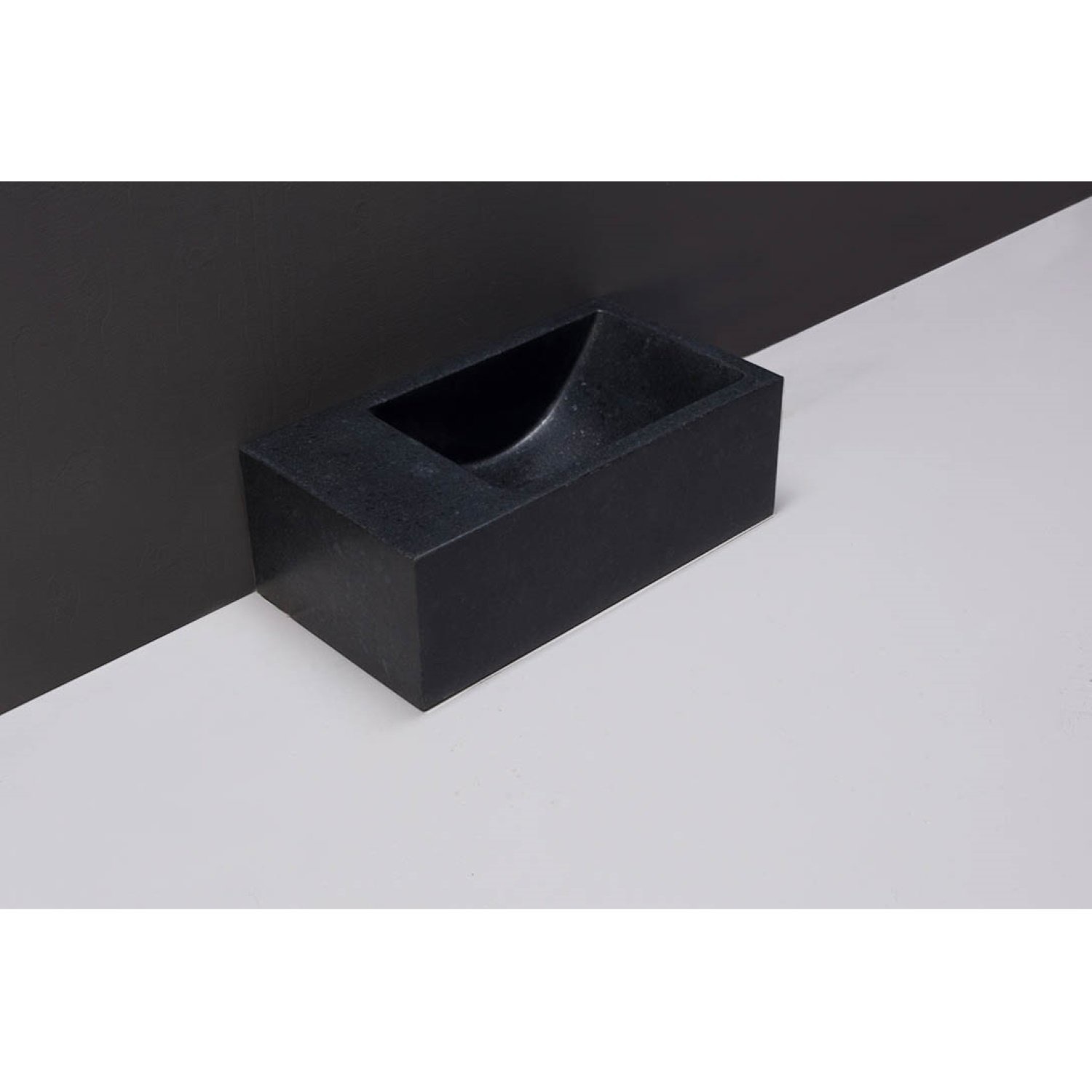 Deze prachtige natuursteen fontein is een lust voor het oog en een toevoeging voor badkamer of toilet. De fontein wordt geleverd zonder kraangat waardoor u een inbouwkraan naar keuze kunt toevoegen aan de fontein. De fontein heeft een zwarte kleur met antraciete tinten en een afmeting van 29x16x10.