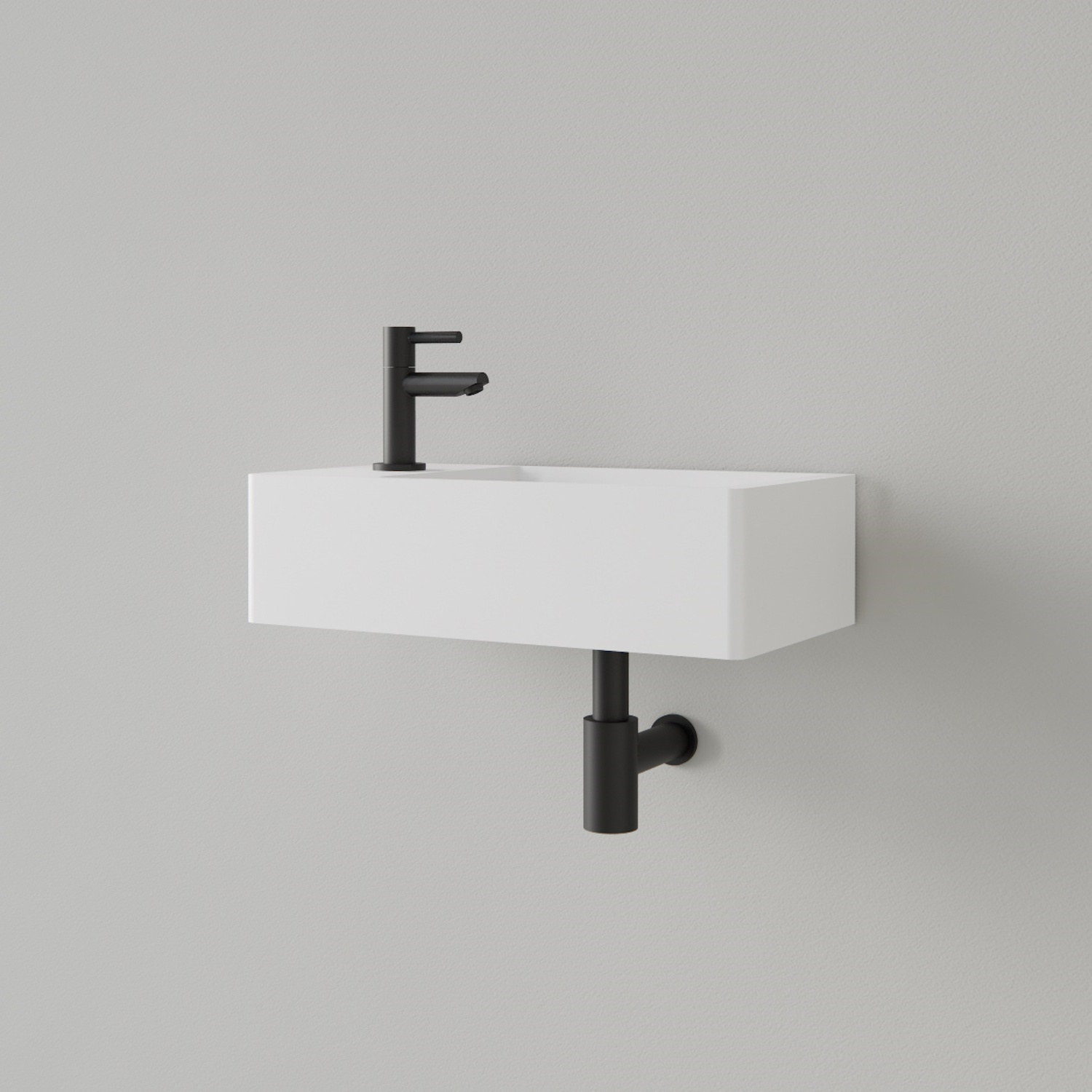 Tevens wordt de fontein ook linksom gemonteerd aan de muur. De fontein wordt geleverd zonder kraan en sifon, deze dient u apart bij te bestellen.