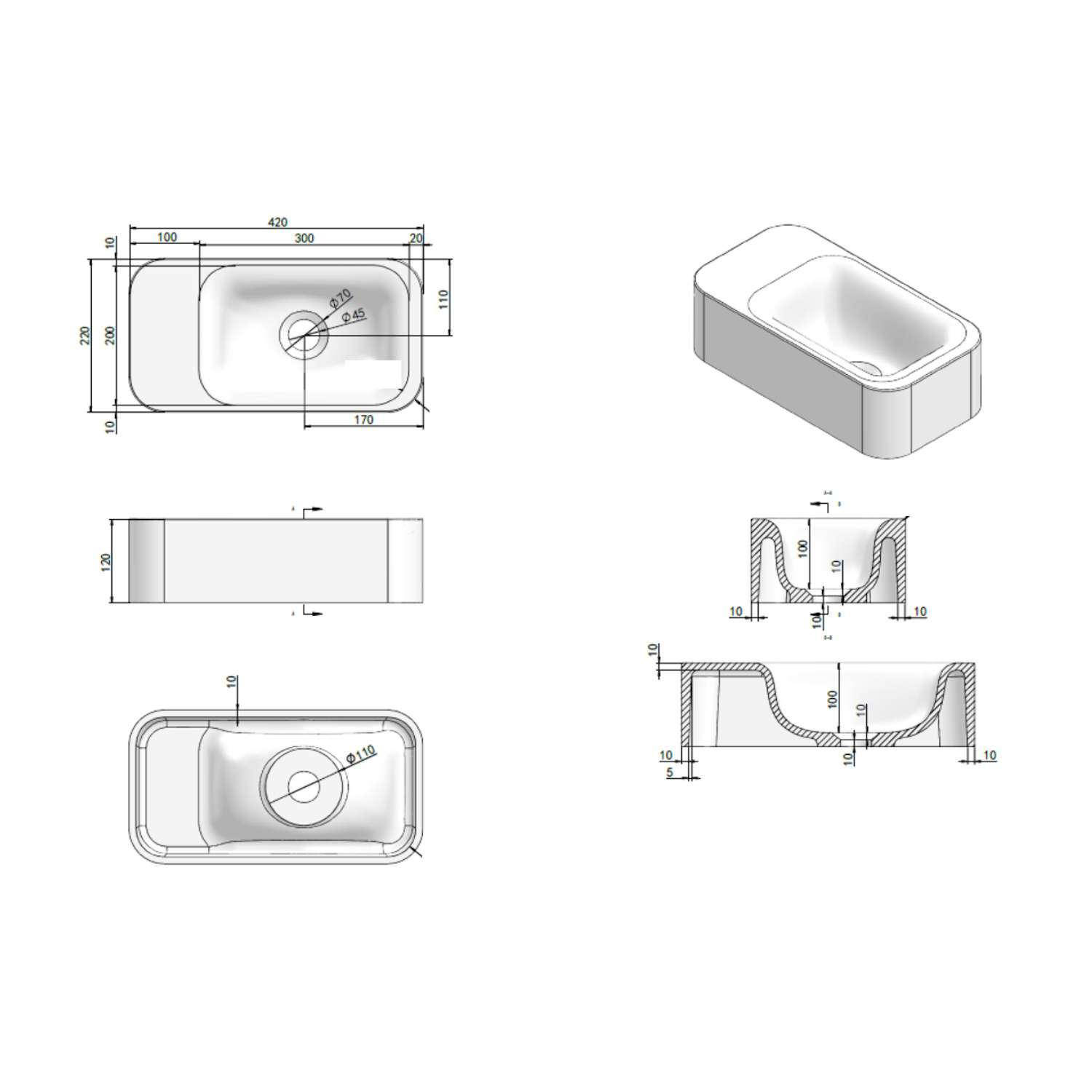 Het fontein bevat geen kraangat, deze dient u zelf te doorboren. U kunt de fontein zowel links als rechts plaatsen.