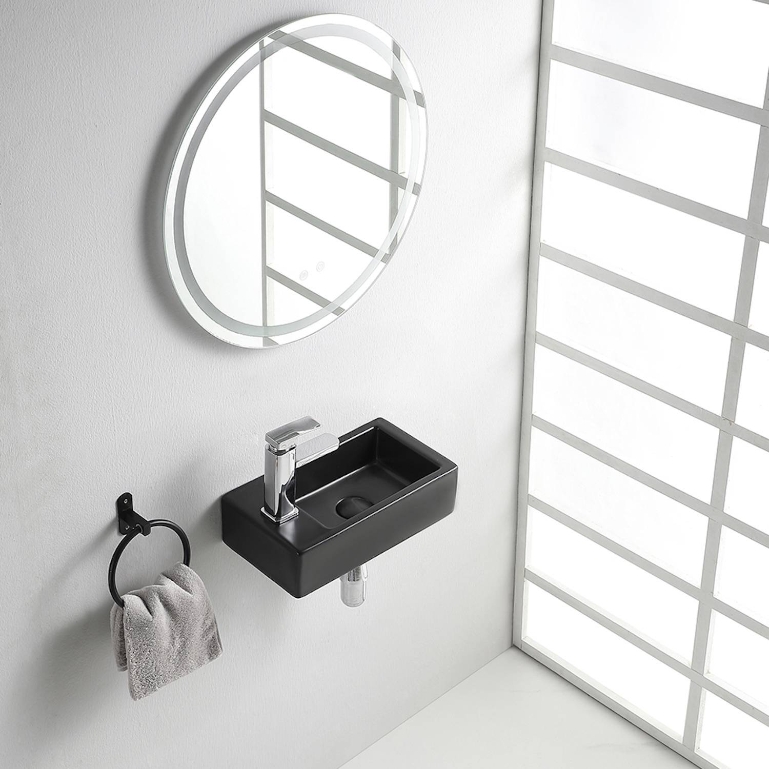 Bent u op zoek naar een fontein voor in uw toilet of badkamer? Dan is deze fontein van Wiesbaden uit de serie Rhea M echt iets voor u. Deze fontein is 40 cm lang, 22 cm breed en 11 cm hoog. Het kraangat zit aan de linkerkant en er zit geen overloop in deze fontein. De fontein heeft de kleur mat zwart. Hij is gemaakt van keramiek. Door zijn design en kleur past deze fontein in elk toilet of badkamer. Van zowel modern als klassiek.