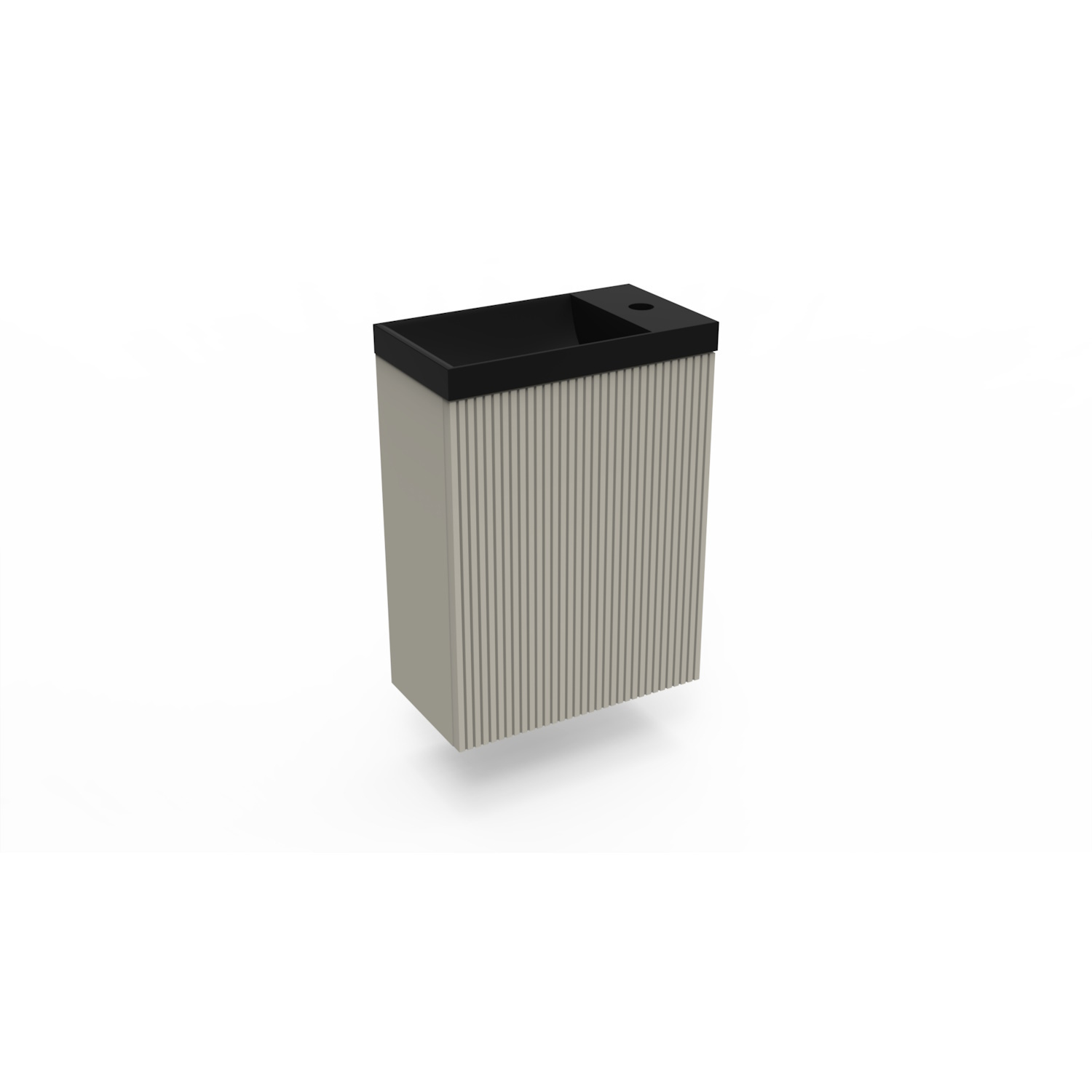 De fonteinbak is mat zwart van kleur. De fontein is gemaakt van Cast Marble materiaal. Een materiaal dat eenvoudig te onderhouden is met reguliere schoonmaakmiddelen. Dit materiaal kan alleen niet schoon gemaakt worden met een schurende substantie. Dit zorgt ervoor dat de beschermende toplaag beschadigd raakt. De beschermende laag is een coating laag van gel. De fontein heeft 1 kraangat en is zonder overloopgat.