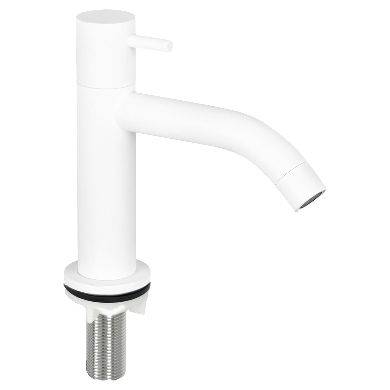 Stoere en industriële mat witte fonteinkraan. Met deze kraan creëert u een warme sfeer in uw toilet. Ondanks zijn praktische compacte afmetingen van 13,8 x 4,8 cm houdt u voldoende ruimte over om comfortabel uw handen te kunnen wassen.
