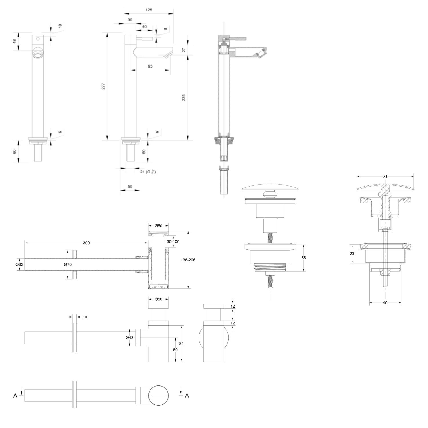 De hoge kraan is goed te combineren met een opbouwwaskom. De fonteinkraan uit de set is gemaakt van messing, heeft een hoogte van 27.7 cm en een diepte van 12.5 cm. De uitloop heeft een hoogte van 22.5 cm en een diepte van 9.5 cm. De koudwaterkraan is eenvoudig te bedienen met de enkele hendel aan de bovenzijde waarmee u de waterstroom kan regelen. Naast een kraan komt de set ook met een waste en designsifon in dezelfde kleur.