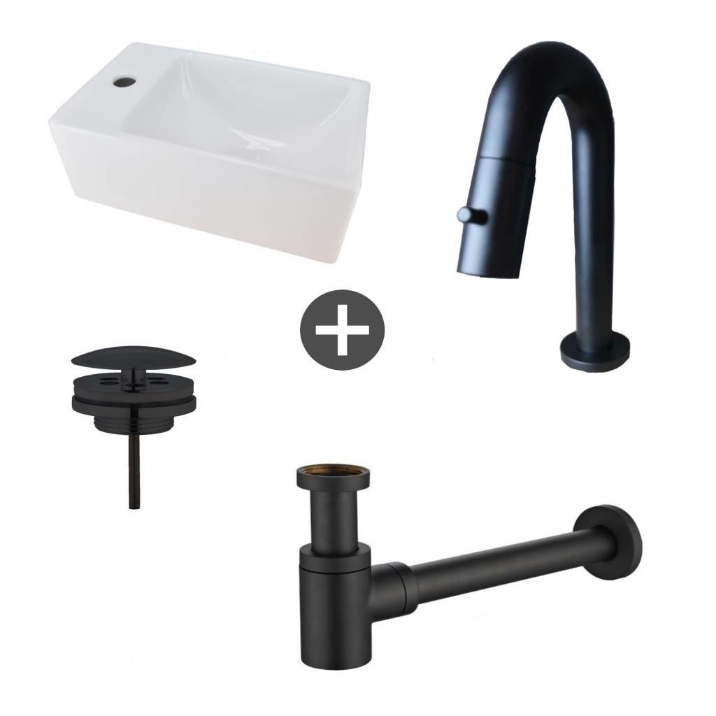 Fonteinen worden geleverd als ONE-PACK welk u een mooi prijsvoordeel oplevert. Wat deze set zo uniek maakt is de combinatie van de zwarte fonteinkraan, sifon, een niet afsluitbare afvoerplug en een bevestigings set.