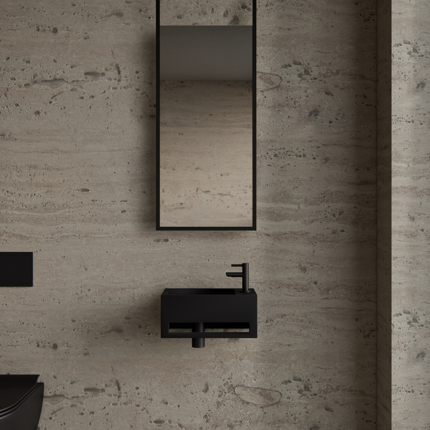 Een fontein en een handdoekhouder in één! Doormiddel van een ruimte aan de voorkant kan u al u uw handdoek kwijt, ideaal voor in de kleine toilet ruimte. Door de strakke vormgeving en mat Zwartte kleur een opvallend en elegant stuk in uw toilet. Met het formaat van 35.6x20.3x15.9 cm heeft u genoeg ruimte om uw handen te wassen.