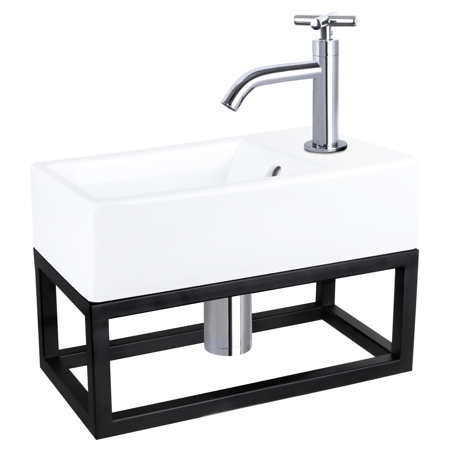 Deze combinatie bestaat uit het stijlvolle keramische fontein Force met chromen gebogen kruis koudwaterkraan, afvoerplug en sifon. Het handige bijpassende mat zwarte handdoekrek, waar u bijvoorbeeld uw handdoeken of andere toiletbenodigheden kunt plaatsen of hangen, maakt de set helemaal af. Het kraangat zit aan de rechterkant van dit stijlvolle wasbakje. Keramiek is een duurzaam materiaal, eenvoudig schoon te houden en gaat jaren mee.