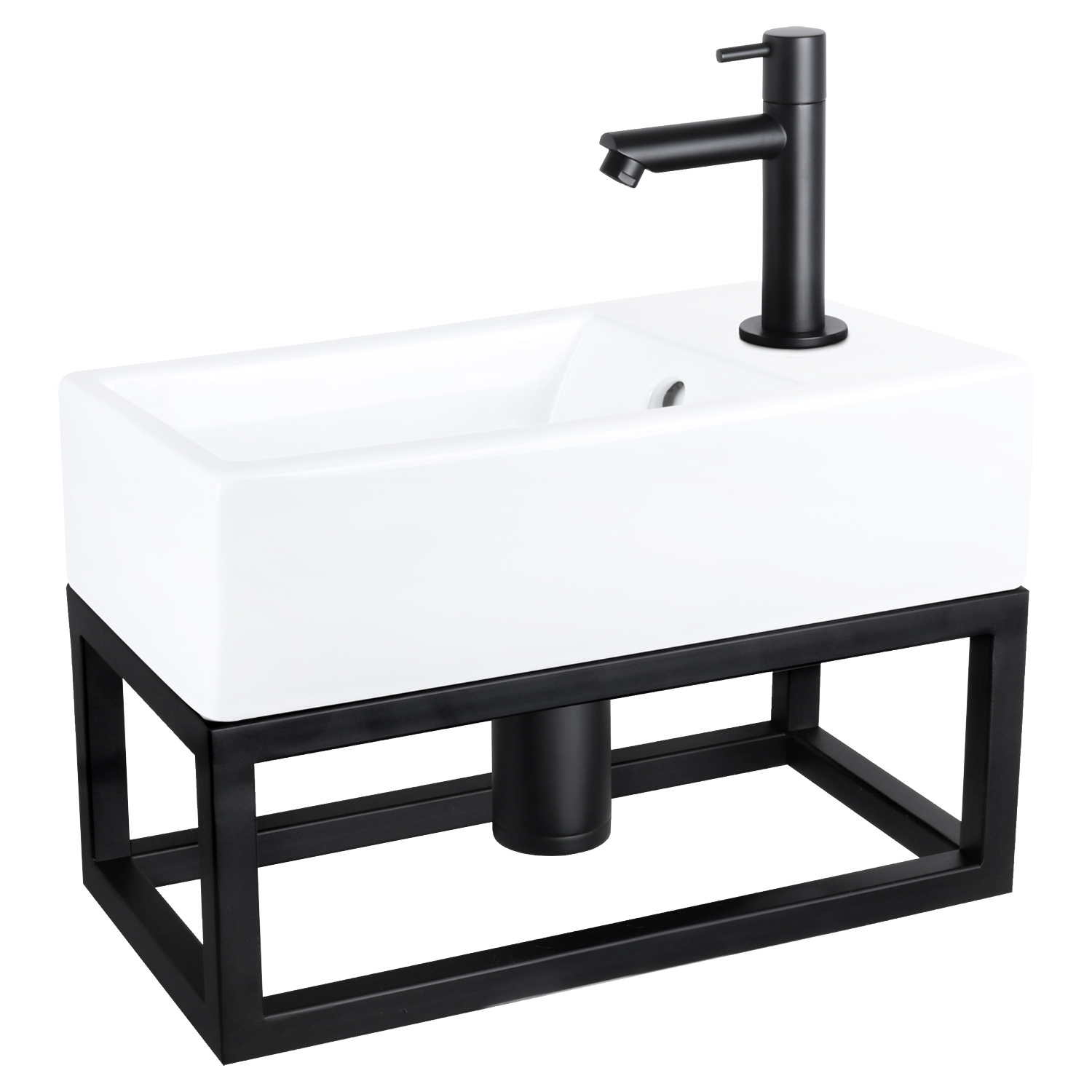 Deze combinatie bestaat uit het stijlvolle keramische fontein Force met mat zwarte rechte koudwaterkraan, afvoerplug en sifon.Het handige bijpassende mat zwarte handdoekrek, waar u bijvoorbeeld uw handdoeken of andere toiletbenodigheden kunt plaatsen of hangen, maakt de set helemaal af. Het kraangat zit aan de rechterkant van dit stijlvolle wasbakje. Keramiek is een duurzaam materiaal, eenvoudig schoon te houden en gaat jaren mee.