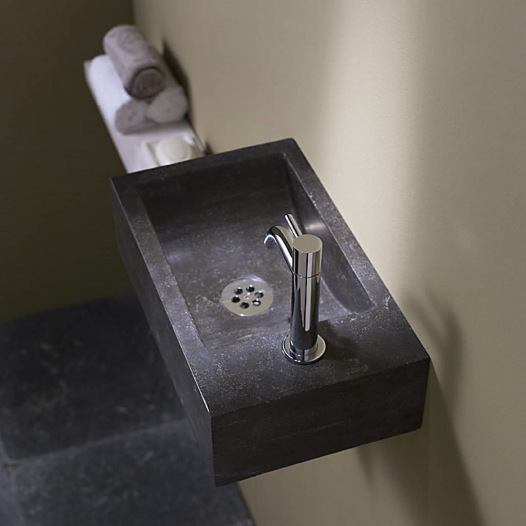 Het unieke van deze set is dat het fonteinbakje gemaakt is van natuursteen. Natuursteen ook wel lime stone genoemd is een kalksteen en de kleur kan variëren van blauw tot bruin grijs. Hardsteen is een materiaal dat steeds vaker wordt gebruikt. Omdat de structuur van natuursteen altijd anders is, is elk product uniek. Het recht hoekige model zorgt voor een strakke afwerking in uw toilet.