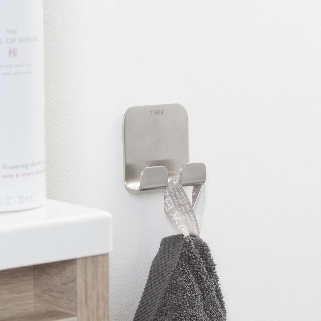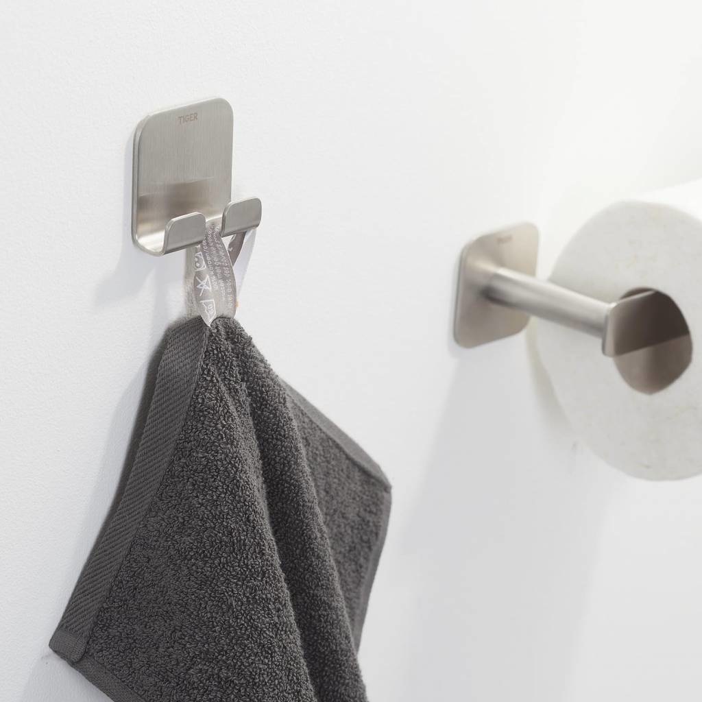 De dubbele haak uit de Colar serie van Tiger is uitgevoerd in geborsteld rvs. De haak is voorzien van een krachtige dubbelzijdige tape waardoor montage op iedere gladde, stevige ondergrond zeer eenvoudig is. De Colar serie bevat tevens een multihaak, maar ook een groot aantal aanvullende accessoires voor de badkamer en toiletruimte in dezelfde stijl.