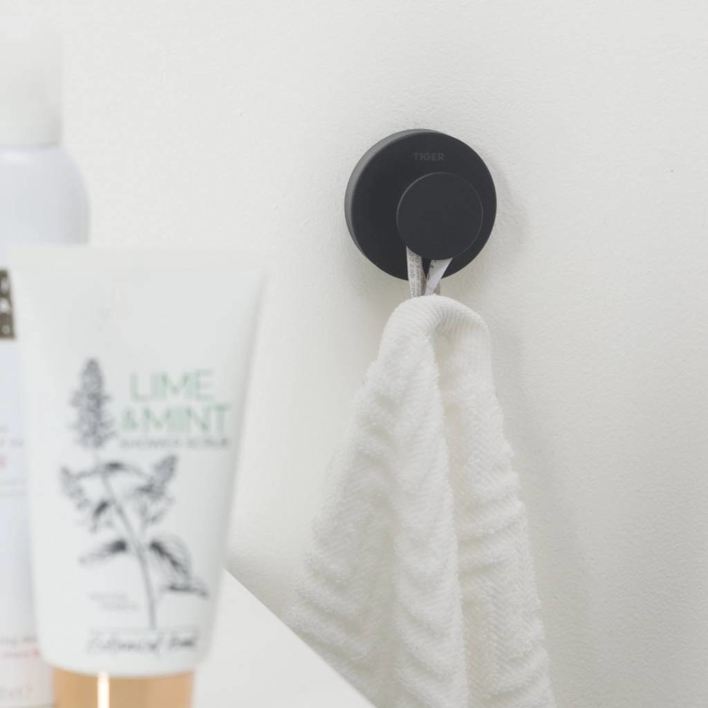 De haak is tevens geschikt voor montage met TigerFix type 1, waarmee accessoires snel en eenvoudig op een gladde, harde ondergrond te bevestigen zijn door middel van een gepatenteerd lijmsysteem. Boren is niet noodzakelijk en de accessoires zijn eenvoudig te verwijderen zonder dat er resten op de ondergrond achterblijven. TigerFix is los verkrijgbaar.