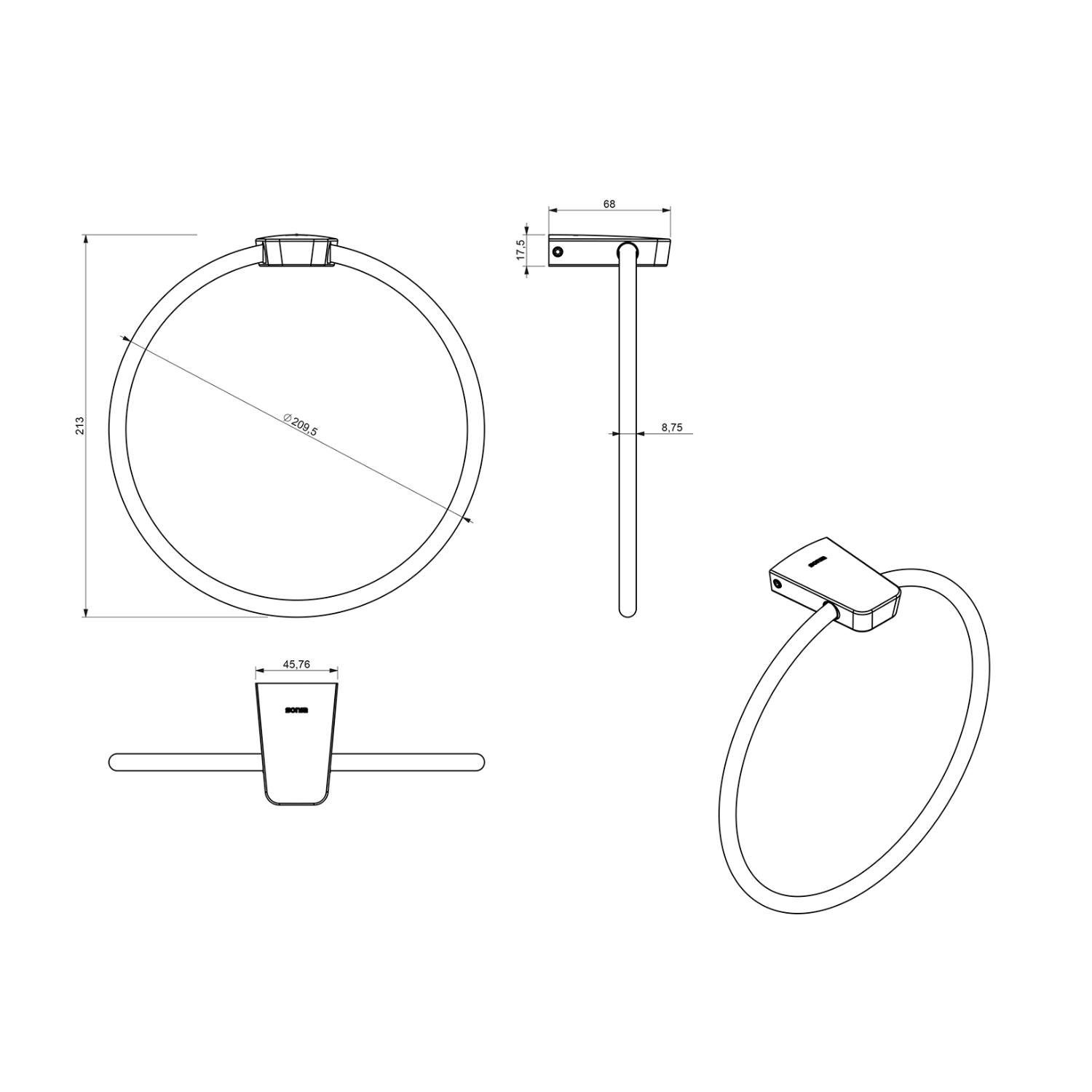 Handdoekhouder Sapho Zen Chrom 20.9x21.3 cm Chroom
