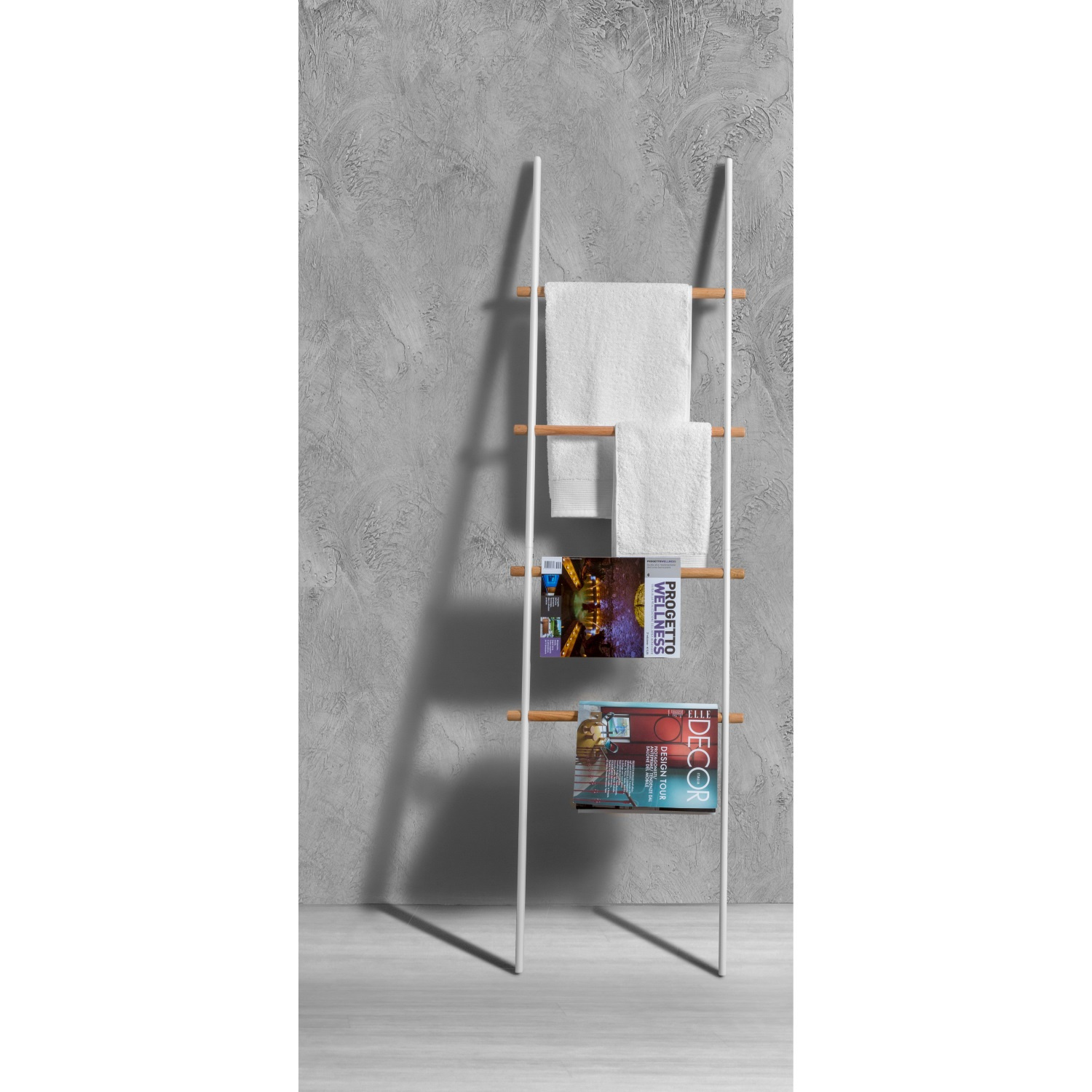 Op zoek naar een handdoekhouder voor in uw badkamer die tegelijkertijd extra stijl en klasse uitstraalt? Kies dan voor de 'Scala' handdoekladder van het Italiaanse merk Cipi! Dit fraaie model heeft een hoogte van 170 cm, een breedte van 49 cm en een diepte/dikte van 3 cm. De verticale elementen hebben een witte kleur en zijn gemaakt van metaal, terwijl de horizontale 'traptreden' gemaakt zijn van hout. Bovendien is deze ladder ook leverbaar als zwarte variant.