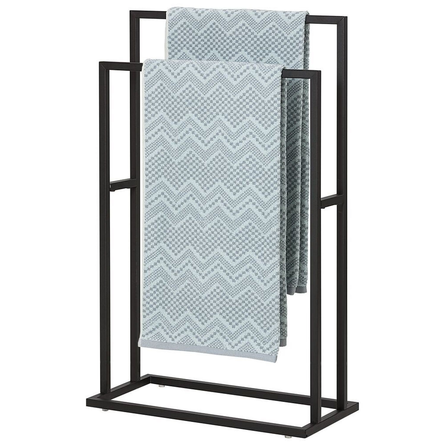 Het rek heeft een hoogte van 78.1 cm, een breedte van 48 cm en een diepte van 24 cm. Doordat het rek twee individuele staanders heeft, kunt u twee handdoeken ophangen.