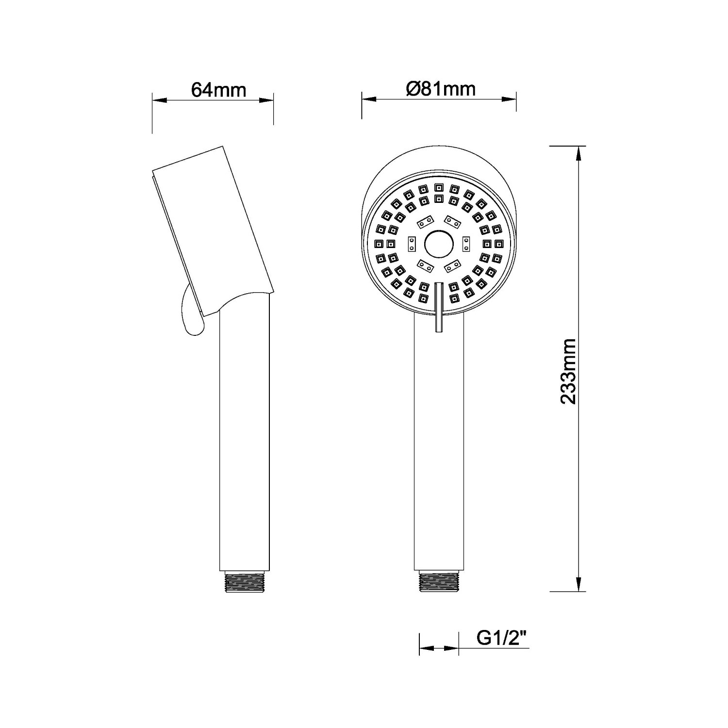 Deze handdouche is van het merk Wiesbaden en behoort tot de serie Cadans. De handdouche is voorzien van twee verschillende standen en is universeel aansluitbaar op vrijwel elke doucheslang. De handdouche beschikt over een 1/2''-aansluiting. De douchekop heeft een doorsnede van 8,1 cm, terwijl het artikel een totale lengte van 23,3 cm heeft.