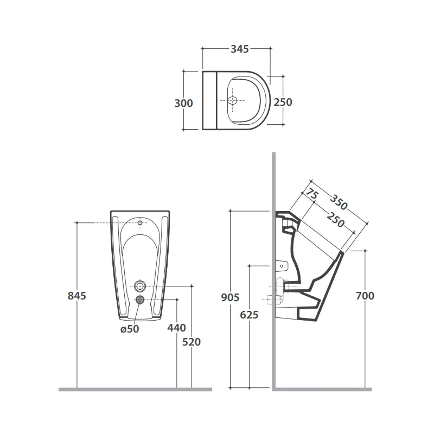 Dit urinoir is gemaakt in Glanzend Wit. De diepte van de bak is 35 cm en het is 30 cm breed. Het ideale van een urinoir is dat de omgeving makkelijker schoon blijft. Dankzij de hoogte hoeft u ook nog eens niets te bukken voor het schoonmaken.