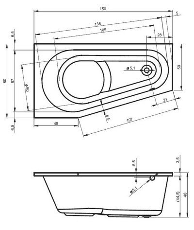 Het Riho Delta bad is een eenpersoons hoekbad dat niet veel ruimte in beslag neemt. Hierdoor past het bad bijna in elke badkamer. Het bad beschikt over voldoende ruimte om comfortabel te baden. Het oppervlak van het bad zijn geen onregelmatigheden toegevoegd.