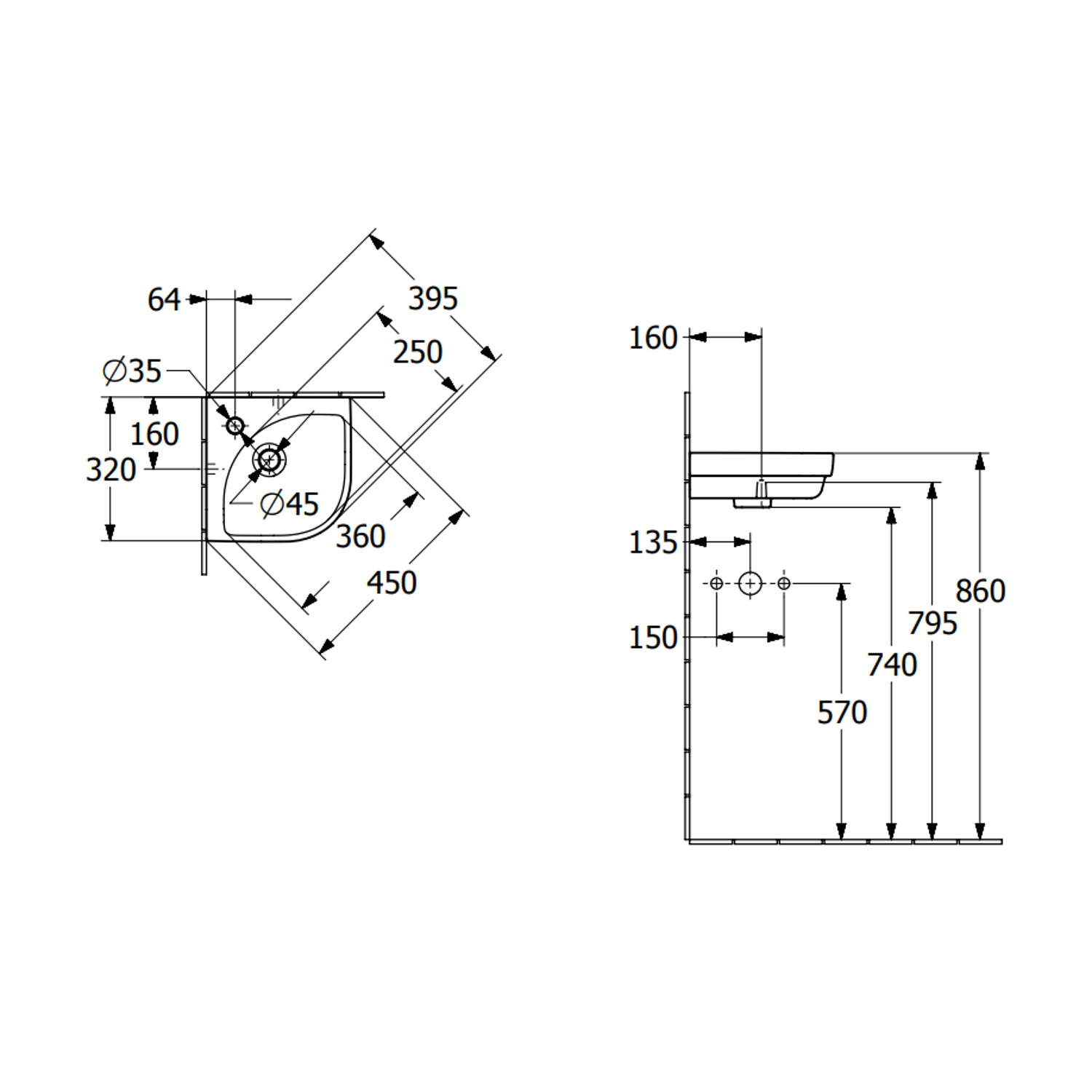 Het heeft 1 kraangat en het gat voor de afvoer heeft een diameter van 4.6 cm. Omdat het kraangat in het midden zit, maakt het niet uit waar u de hoekfoentein plaatst.