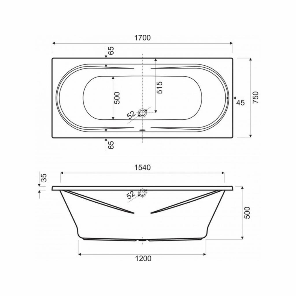 Inbouw Duo Ligbad Wisa New Toscana 170x75x50 cm Wit