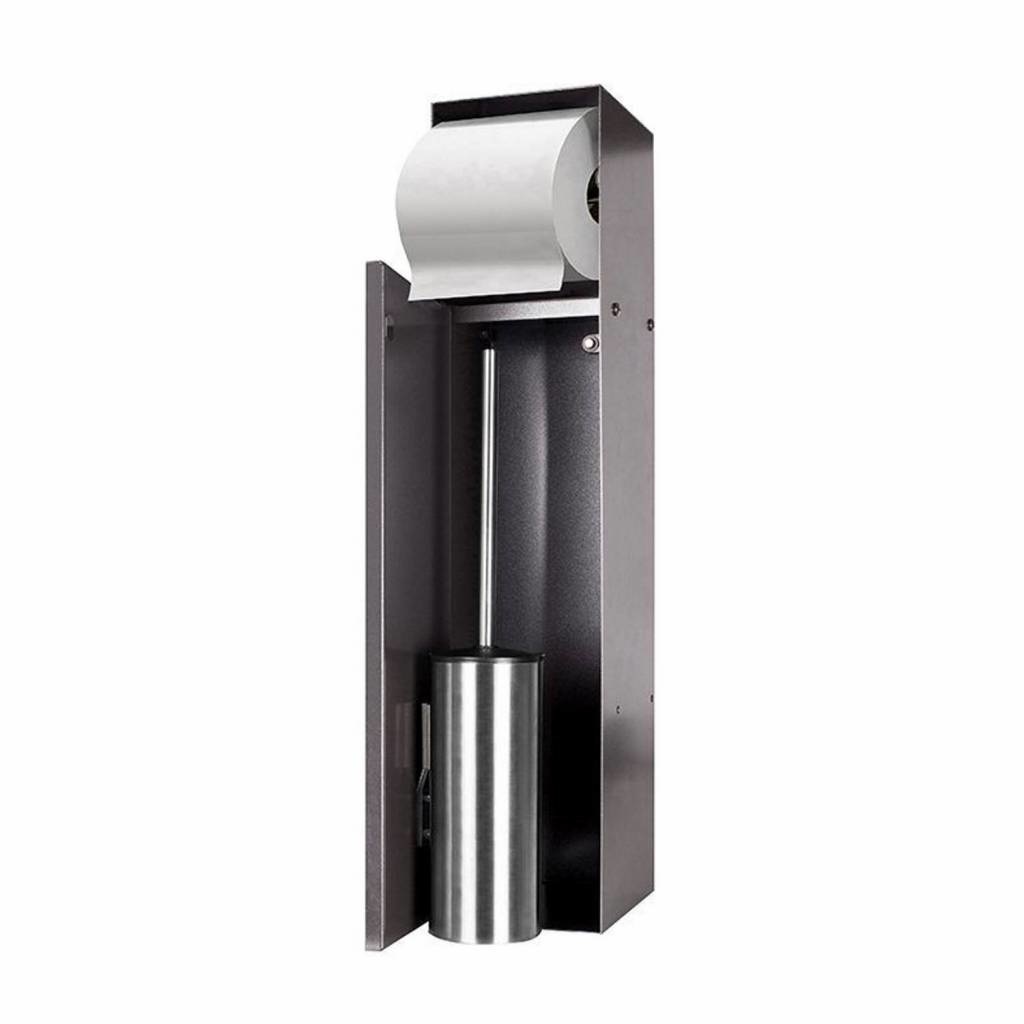 De LoooX Closed serie beschikt over een reeks opbergsystemen voor de toiletborstel.Daarnaast heeft de houder ook een plek om een toiletrol op te hangen.