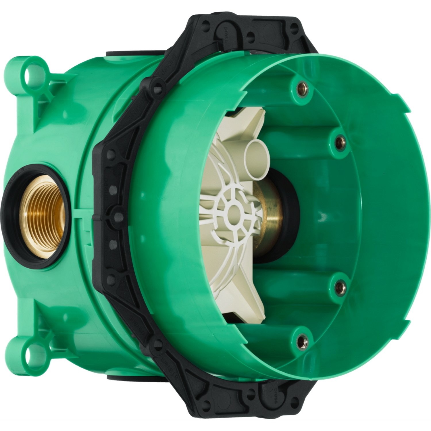 Dit inbouwdeel van HansGrohe komt uit de iBox serie en is een universeel inbouwdeel. Dit inbouwdeel is geschikt voor alle afbouwdelen voor inbouw douches, bad- en douchekranen en thermostaten. In dit inbouwdeel zit een rotatiesymmetrische montage. Dit inbouwdeel is Kiwa K6161_mechanical Mixers EN817 en Kiwa K6522_Fill- and overflow system gekeurd.