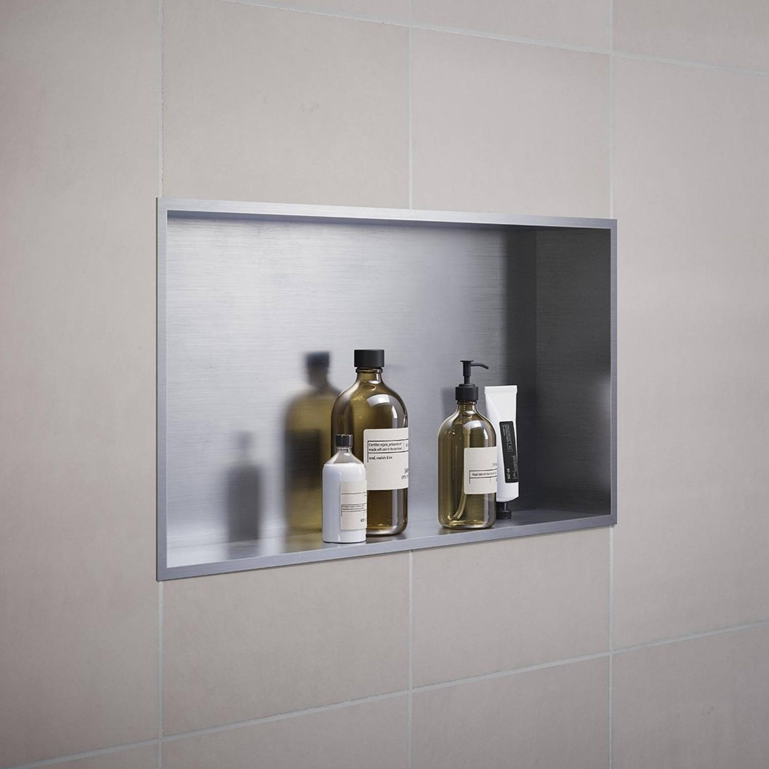 Deze Inbouwnis is van het merk Smedbo uit de serie Sideline en is geborsteld edelstaal van kleur. Met een inbouwnis kan er wat extra opbergruimte gecreëerd worden in de badkamer of doucheruimte. Bijvoorbeeld voor het neerzetten van de doucheproducten. Of gebruik de inbouwnis om de ruimte extra sfeer te geven met een paar kaarsen in of andere leuke accessoires.