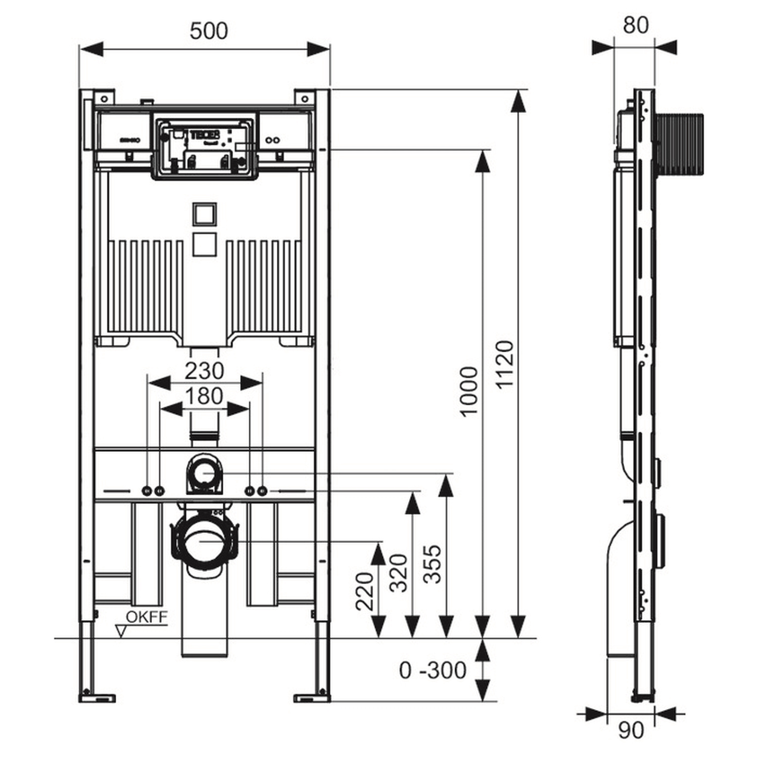 Inbouwreservoir TECE profil met Octa II-spoelkast 8 cm bouwhoogte 1120 mm