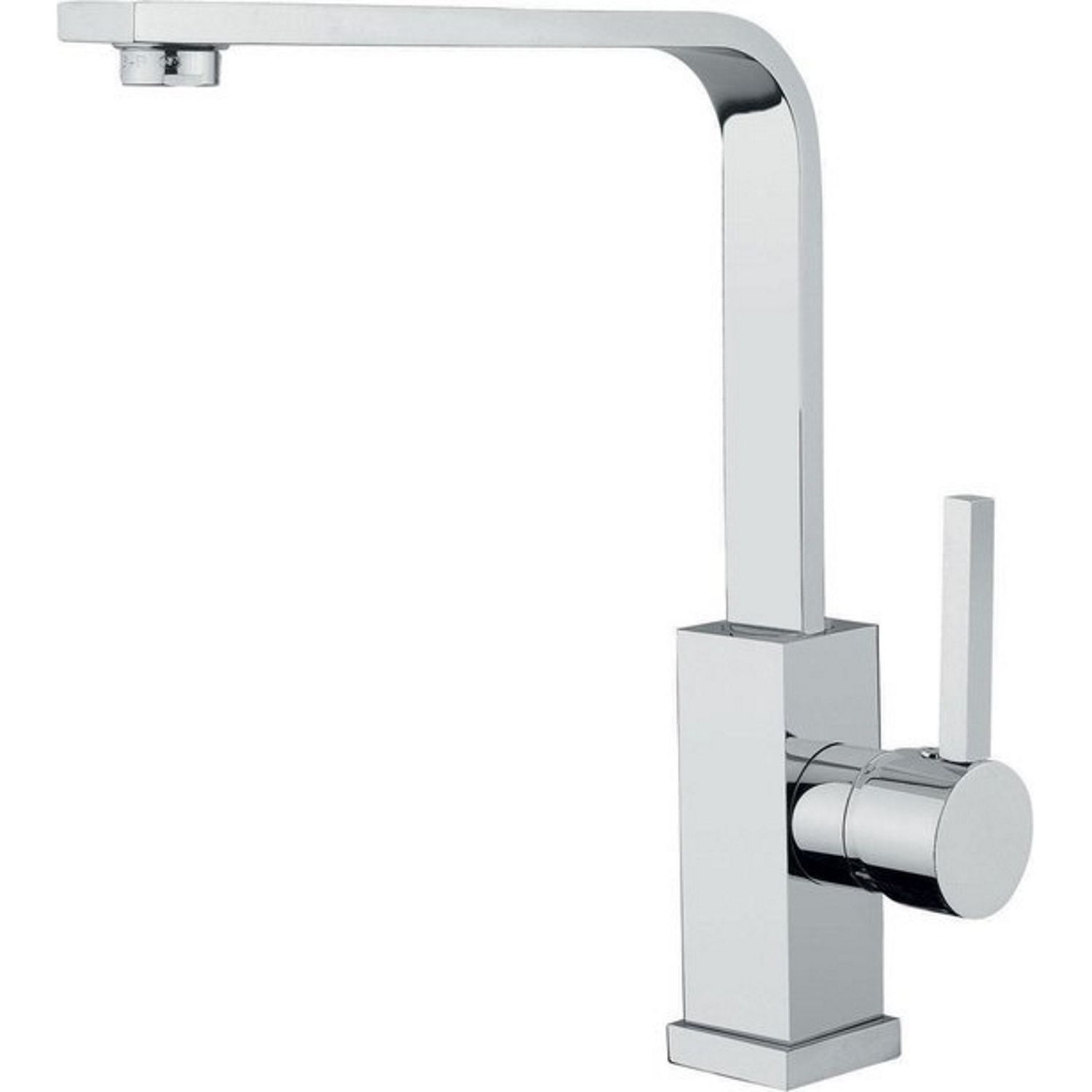 Deze keukenkraan heeft door zijn vierkante vormen een bijzonder design. De naam 'square' zegt het al. Zowel het onderstel als de uitloop en de hendel zijn vierkant en hoekig. Dit geeft de kraan een luxe en moderne uitstraling. De kraan is 31 cm hoog en 18 cm diep. Hij is van messing, met een glanzende chromen finish.