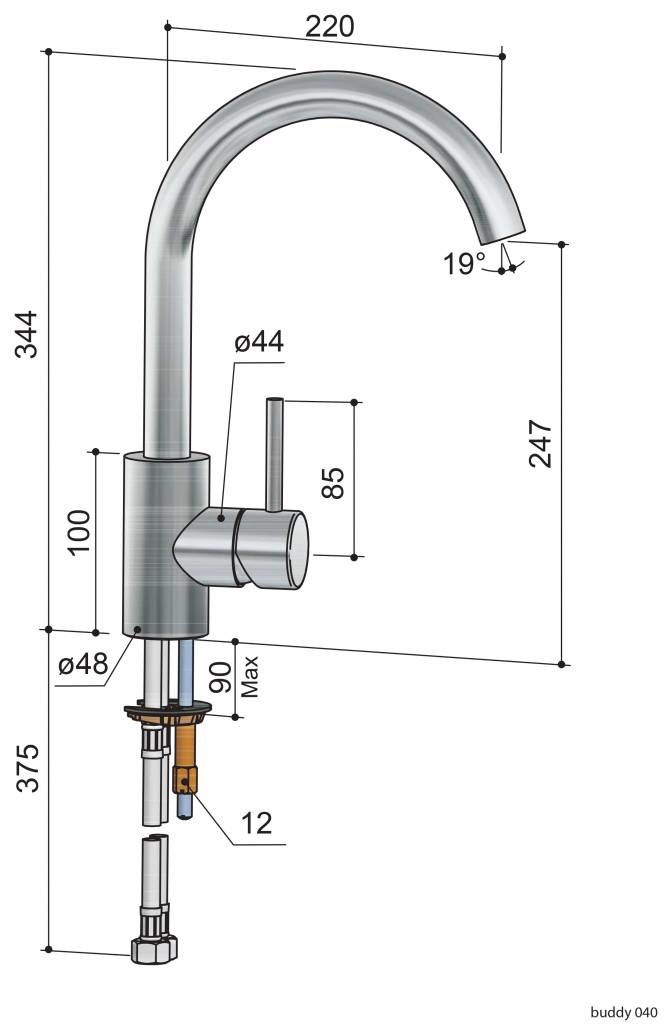 Bent u op zoek naar een moderne wastafelmengkraan? Zoek dan niet verder! De Buddy keukenmengkraan van het merk Hotbath is geschikt voor elke moderne keuken. De keukenkraan is voorzien van een mengfunctie: dat houdt in dat u met de hendel warm en heet water kunt mengen tot de juiste temperatuur. U heeft geen 2 losse knoppen meer waar u mee moet stoeien om de juiste temperatuur te krijgen. De kraan heeft een hoogte van 34.4 cm. Ook beschikt de kraan over een draaibare uitloop, hierdoor kunt u gemakkelijk de wasbak schoonmaken.