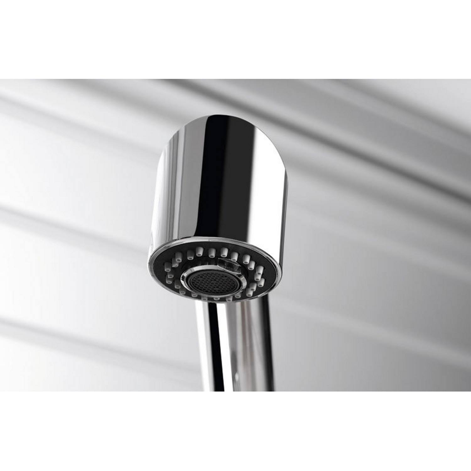 Als extra optie heeft de kraan een uittrekbare spray, hierdoor is de kraan extra handig. De praktische kraan is afgewerkt in een chromen kleur.