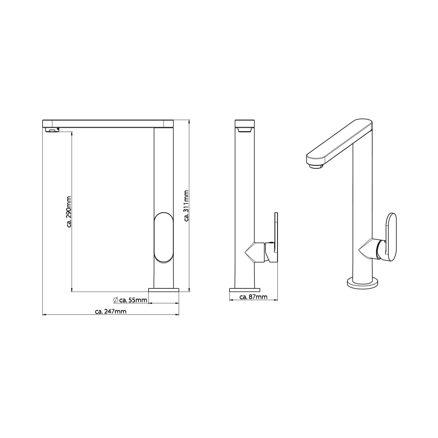 De Chicago keukenkraan van het merk Schutte is gemaakt van messing en heeft een gladde chromen afwerking. De mengkraan heeft een strakke en mooie uitstraling vanwege de vorm en hoogte van de kraan. De keukenkraan is gemakkelijk te bedienen met een zijdelingse hendel. Met de hendel kunt u de temperatuur van het water regelen. De keukenkraan beschikt over een hoge en draaibare uitloop. De draaibare uitloop maakt het mogelijk om een dubbele vaat met water te vullen. De mengkraan is 24.7 cm lang, 31.1 cm hoog en heeft een diameter van 5.5 cm.