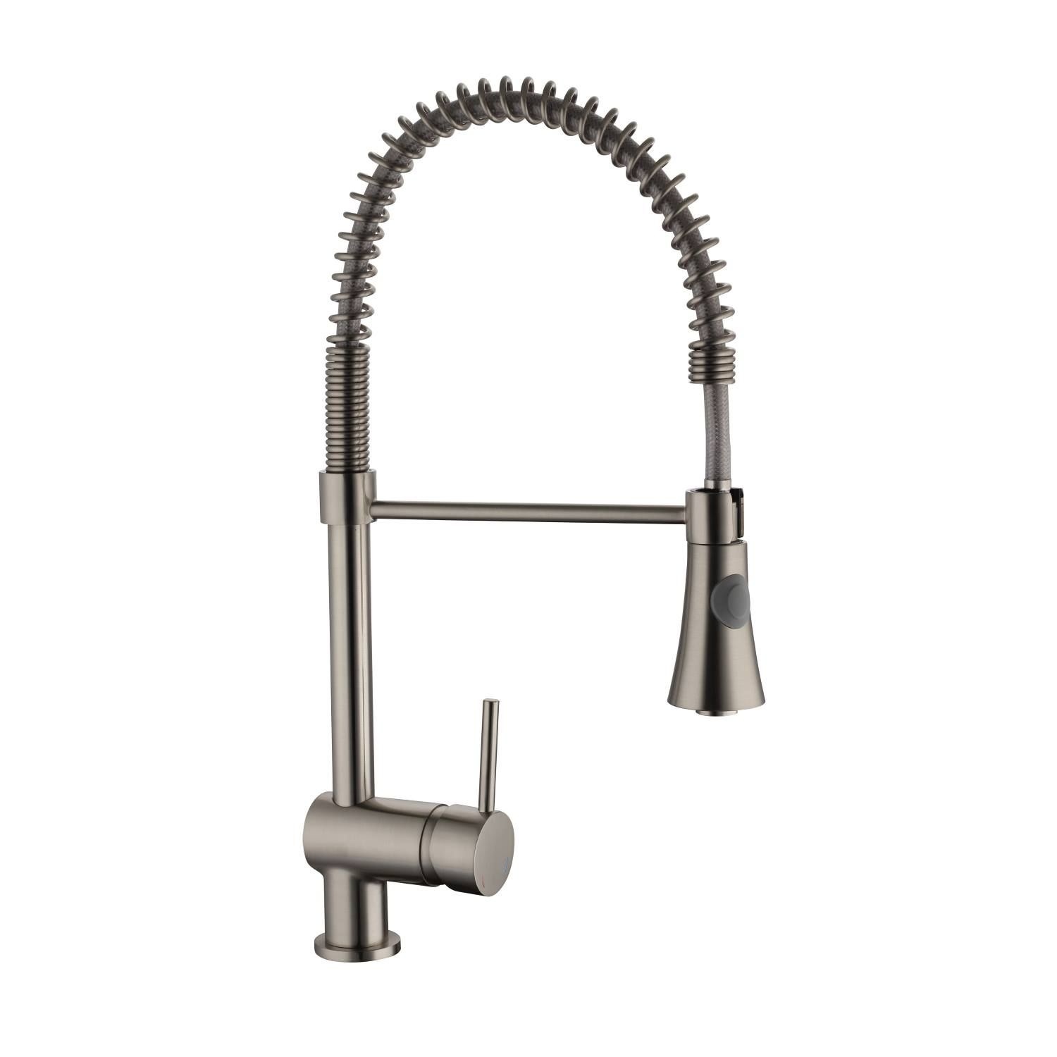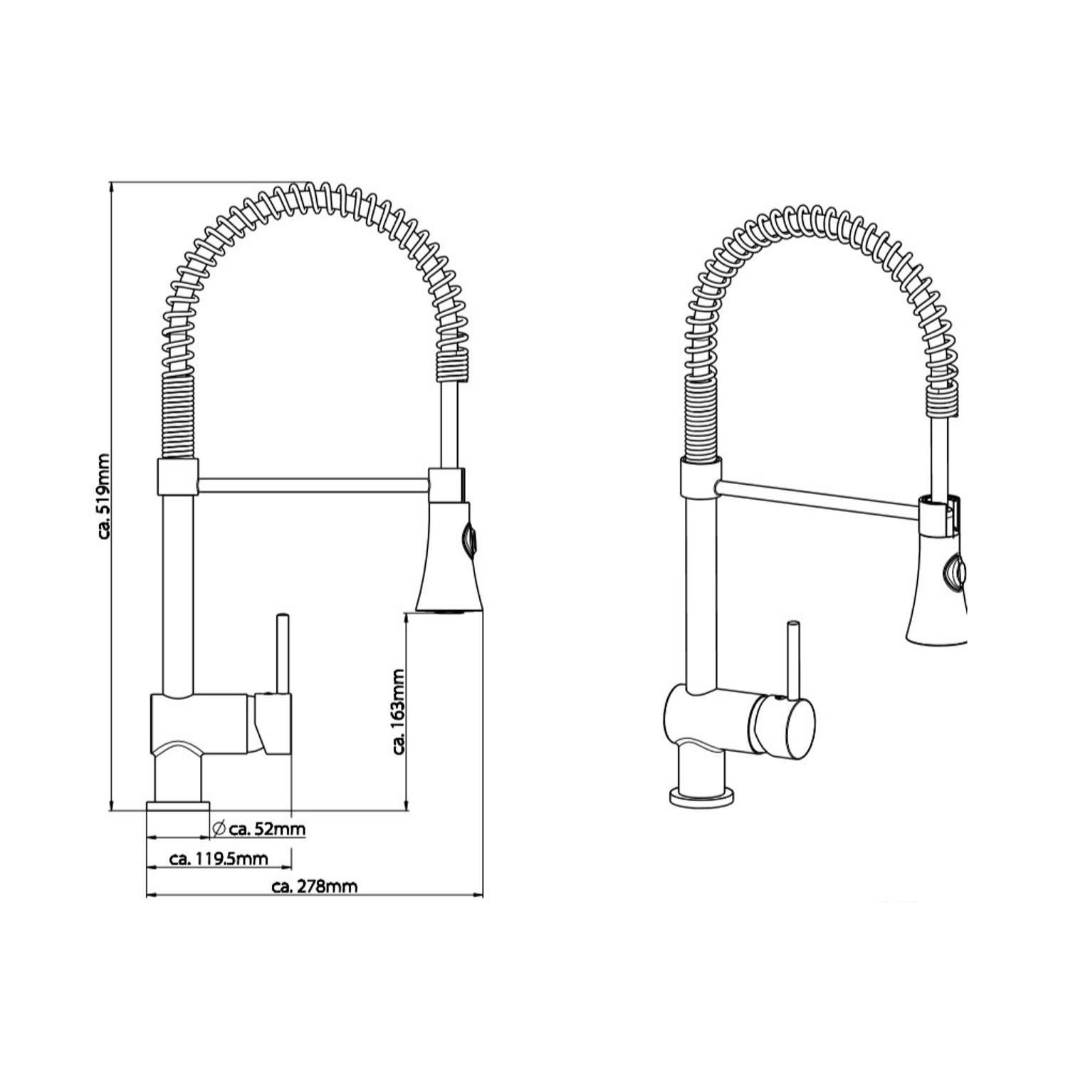 De Cornwall keukenkraan met spiraalveer van het merk Schutte is gemaakt van messing en heeft een RVS look. De mengkraan bevat een uittrekbare uitloop waarmee u gemakkelijk de kraan in verschillende richtingen kan bewegen. Met de hendel kunt u de temperatuur van het water regelen. De keukenkraan beschikt over een hoge en draaibare uitloop met spiraalveer. De draaibare uitloop maakt het mogelijk om een dubbele vaat met water te vullen. Verder bevat de kraan twee standen; de gewone straal en een douchestraal. De mengkraan is 27.8 cm lang, 51.9 cm hoog en heeft een diameter van 5.2 cm.