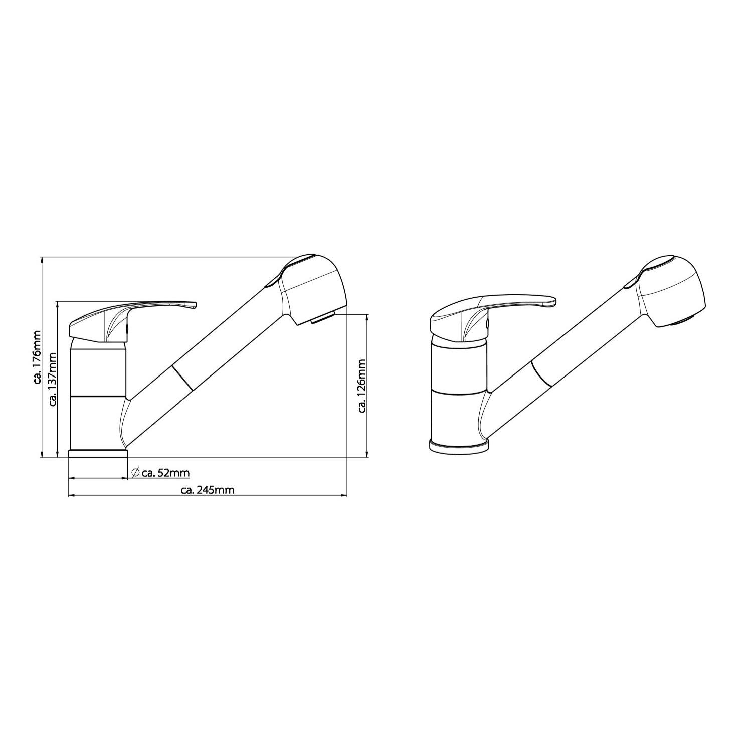 De Diziani keukenkraan van het merk Schutte is gemaakt van messing en heeft een chromen afwerking. De mengkraan bevat een uittrekbare sproeier waarmee u gemakkelijk de kraan op verschillende manieren kunt gebruiken. Met de hendel kan de temperatuur van het water geregeld worden. De keukenkraan beschikt over een draaibare uitloop. De draaibare uitloop maakt het mogelijk om een dubbele vaat met water te vullen. De mengkraan is 24.5 cm lang, 17.6 cm hoog en heeft een diameter van 5.2 cm.