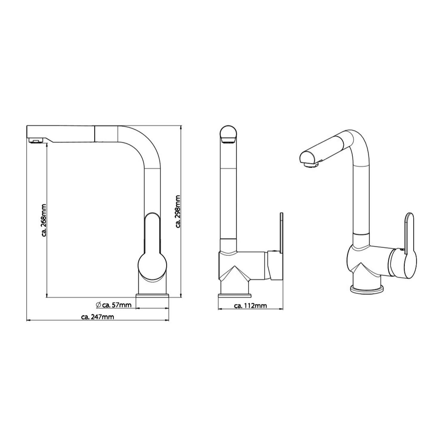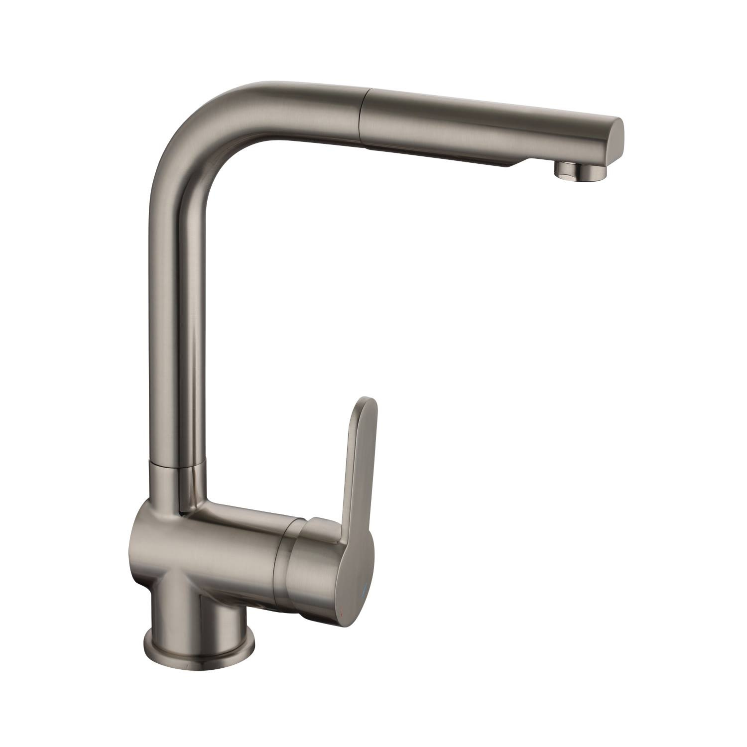 De London keukenkraan van het merk Schutte is gemaakt van messing en heeft een RVS look. De mengkraan bevat een uittrekbare uitloop waarmee u gemakkelijk de kraan in verschillende richtingen kan bewegen. Met de zijdelingse greep kunt u de temperatuur van het water regelen. De keukenkraan beschikt over een hoge en draaibare uitloop. De draaibare uitloop maakt het mogelijk om een dubbele vaat met water te vullen. De mengkraan is 24.7 cm lang, 29.8 cm hoog en heeft een diameter van 5.7 cm.