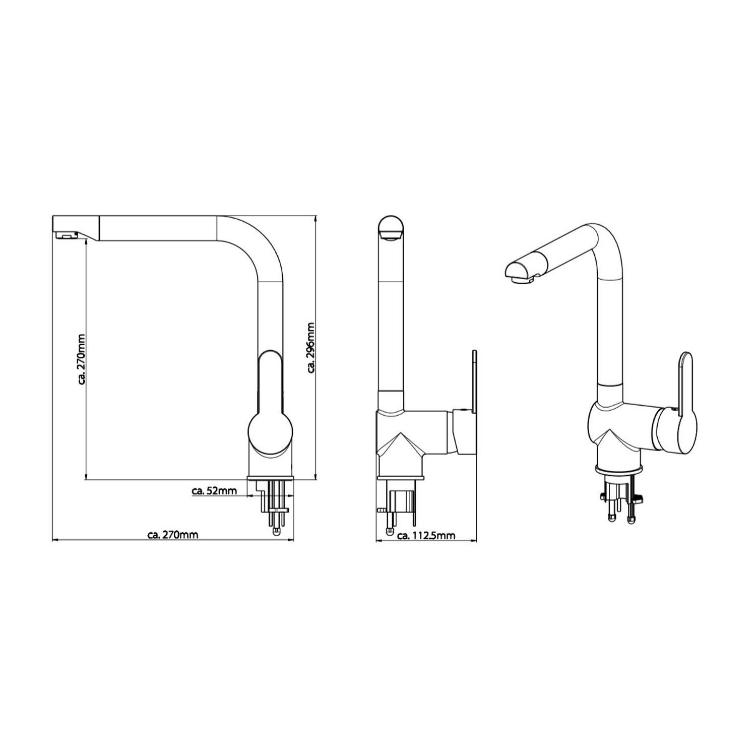 De Rio keukenkraan van het merk Schutte is gemaakt van messing en heeft een gladde chromen afwerking. De kraan is eenvoudig te monteren van boven. De keukenkraan beschikt over een hoge en draaibare uitloop. De draaibare uitloop maakt het mogelijk om een dubbele vaat met water te vullen. Met de zijdelingse hendel kunt u de temperatuur van het water regelen. De mengkraan is 27 cm lang, 29.6 cm hoog en heeft een diameter van 5.2 cm.