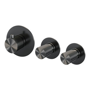 Inbouwthermostaat Brauer Gunmetal Carving en 2 Stopkranen Met in- en Afbouwdelen Geborsteld Gunmetal