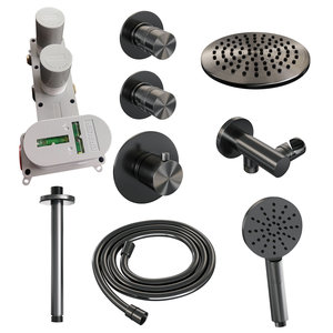 Regendoucheset Inbouw Brauer Gunmetal Edition Thermostatisch 20cm met 3-Weg Omstelling, Gebogen Wandarm en 3-Standen Handdouche Geborsteld Gunmetal