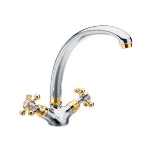 Wastafelmengkraan Sapho Antea 2-knop Gebogen Uitloop 26.5 cm Chroom / Goud