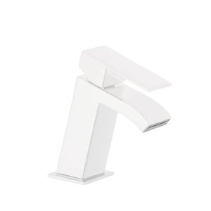 Wastafelmengkraan Tres Cuadro Exclusive 1-Hendel Schuin 14,3 cm met Licht Gebogen Uitloop Waterval Mat Wit