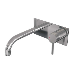 Inbouw Wastafelmengkraan Brauer Chrome Carving Coldstart Gebogen Uitloop Ronde Hendel Rechts Chroom PVD Met Afdekplaat