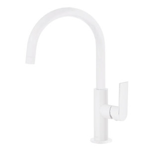 Wastafelmengkraan Tres Loft Colors 1-Hendel Uitloop Gebogen 20 cm Rond Mat Wit