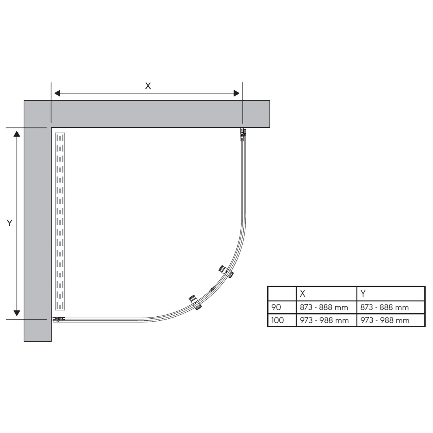 De kwartronde douchecabine heeft een verstelbaarheidsbereik van 97.3 tot 98.8 cm aan beide muurzijdes. Daarnaast heeft de douchedeur een unieke hoogte van 200 cm. Zo voorkomt u opspattend water en blijft de rest van uw badkamer echt droog.