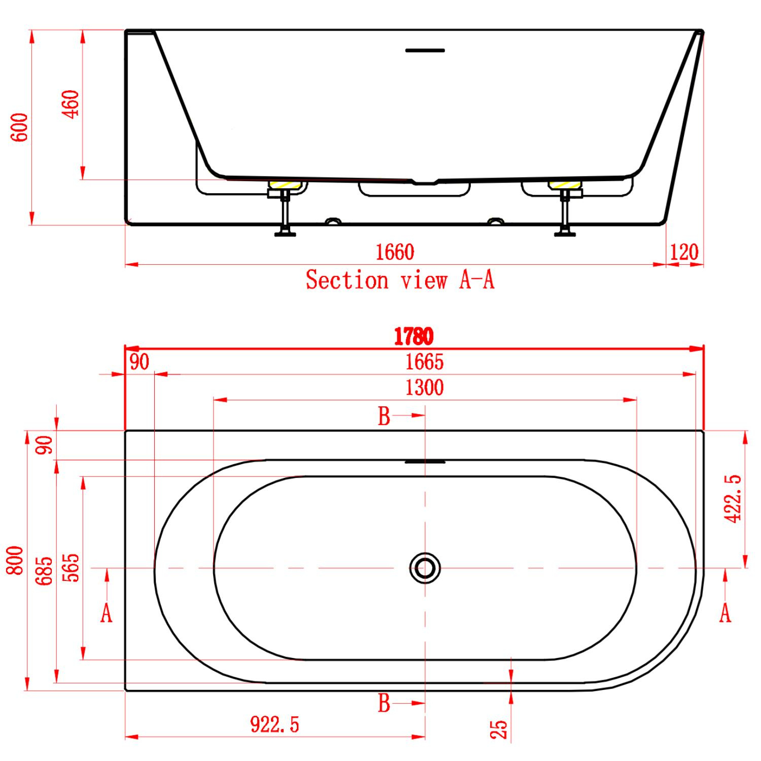 Dit half vrijstaande bad van Arcqua komt uit de Santo serie en is een back to wall bad. Dat betekend dat de achterkant van het bad tegen de muur aan bevestigd wordt waardoor het bad half vrijstaand wordt. Dit geeft een stukje extra luxe bij u in de badkamer. Het half vrijstaande bad is een uitstekende keuze aangezien deze is gemaakt van acryl in een witte kleur en vervolgens is afgewerkt met een glanzende laag. De lengte van dit half vrijstaande bad is 178 cm en de breedte is 80 cm.