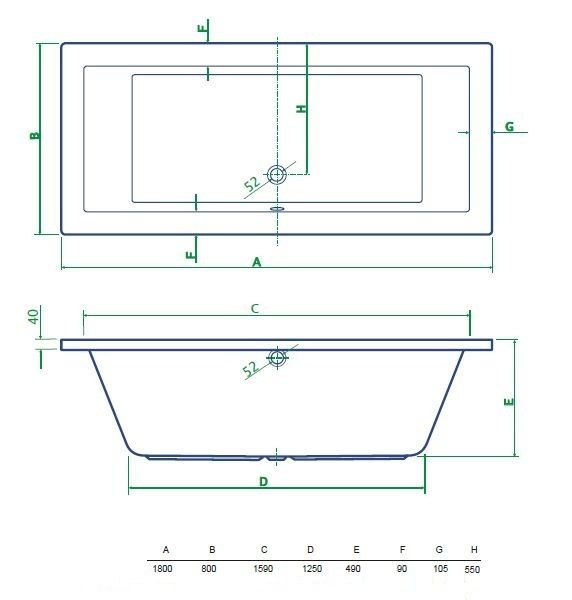 Een ligbad met een strak design en gemaakt van acryl. Het is een duo bad wat dus betekent dat de afvoer in het midden zit. Bij dit bad kunt u ook kiezen uit verschillende badplugs en universele badpoten.