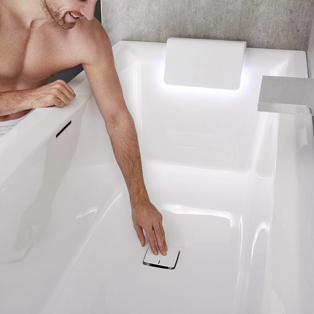 De onzichtbare bevestiging van het hoofdkussen is al een unicum op zich. Nog specialer is de mogelijkheid om het hoofdkussen als lichtbron voor het bad te gebruiken. Op doordachte wijze kan vanachter het hoofdkussen een wit licht het badwater verlichten. Dit is niet alleen zeer sfeervol maar ook handig bij het lezen van bijvoorbeeld een boek.