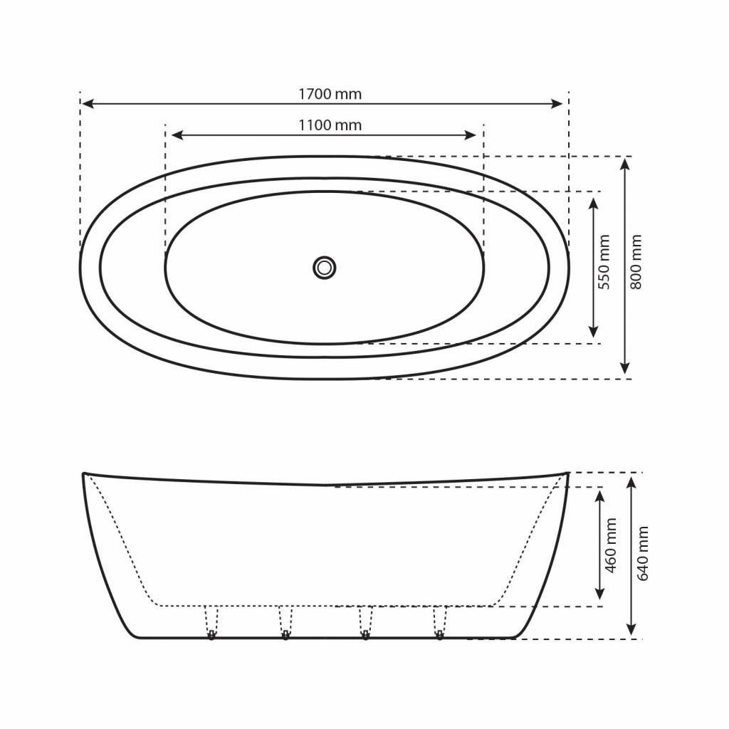 Dit vrijstaande ligbad van Boss & Wessing is een absolute blikvanger te noemen! Het bad heeft zachte rondingen naar binnen toe waardoor het zeer comfortabel ligt. Met een lengte van 170 cm kan het bad bovendien in bijna elke badkamer geplaatst worden. De breedte van het bad bedraagt 80 cm, terwijl het bad een diepte van 56 cm kent. Het afvoergat heeft een diameter van 52 mm.