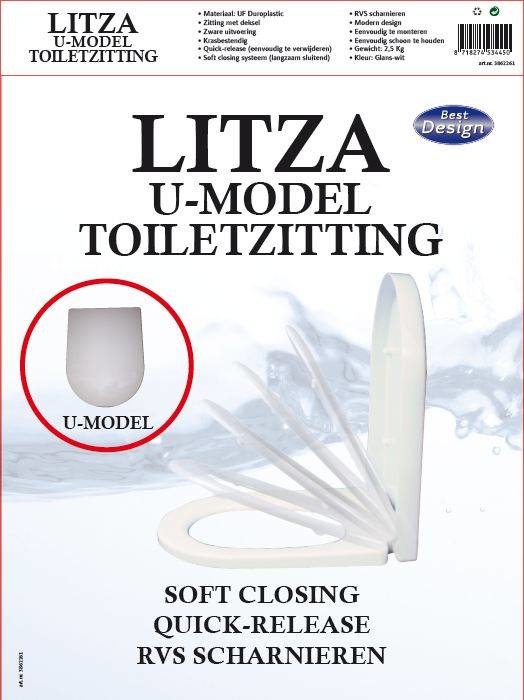 Strakke Litza toiletzitting met deksel van duroplastic. Deze toiletzetting beschikt over een soft closing systeem, RVS scharnieren, is eenvoudig te monteren en makkelijk schoon te houden.