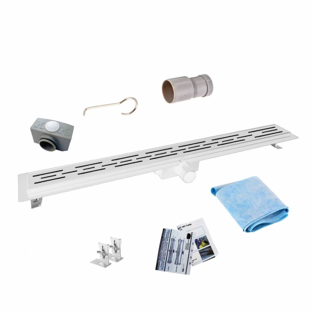 De moderne mat witte douchegoot van 7cm breed is in verschillende maten verkrijgbaar om voor elke badkamer de juiste douchegoot te kunnen realiseren. De goot is volledig van RVS met als voordeel dat het niet roest en gaat lang mee.